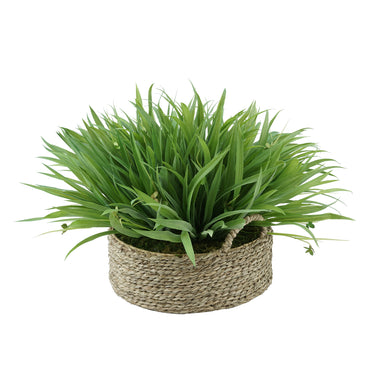 Faux Ribbon Grass in Large Seagrass Tray Basket