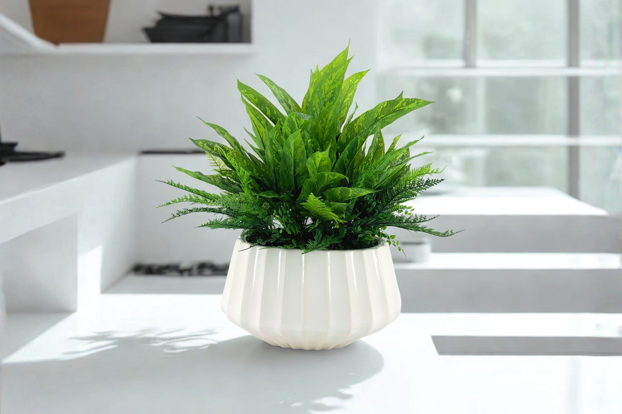 Elevate your décor with our hand-crafted faux plants featured in designer vessels.