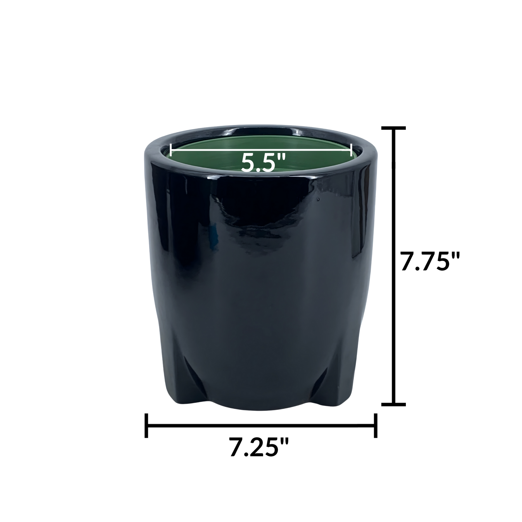 Glossy Black Small Ceramic Tripod Pot-in-a-Pot Container