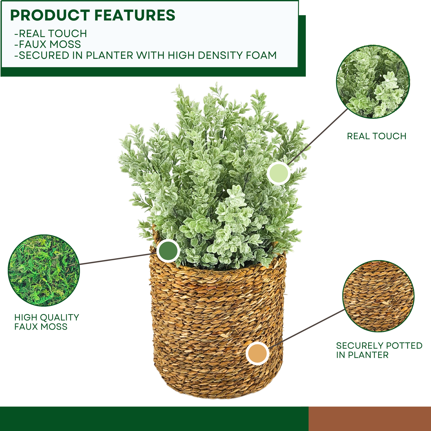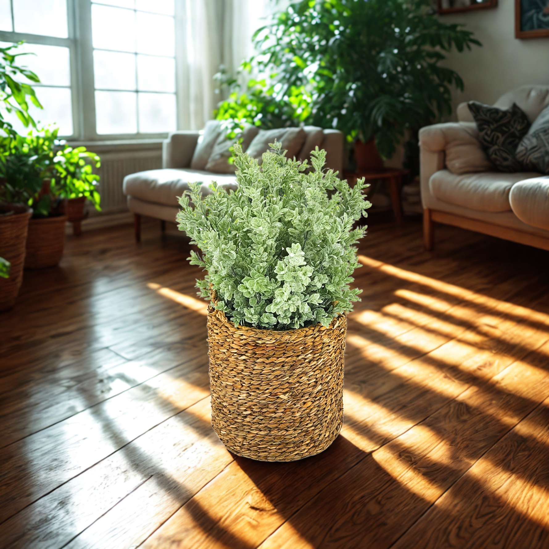 20" Artificial Powdered Eucalyptus in Small Woven Basket -