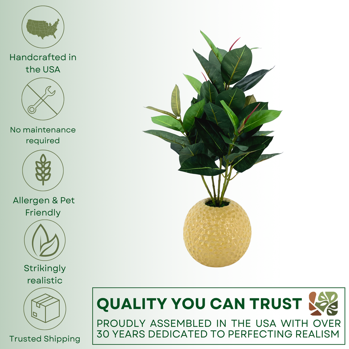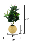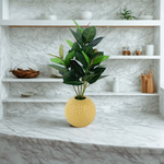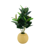 Faux Rubber Plant in Glossy Yellow Dimpled Spherical Ceramic