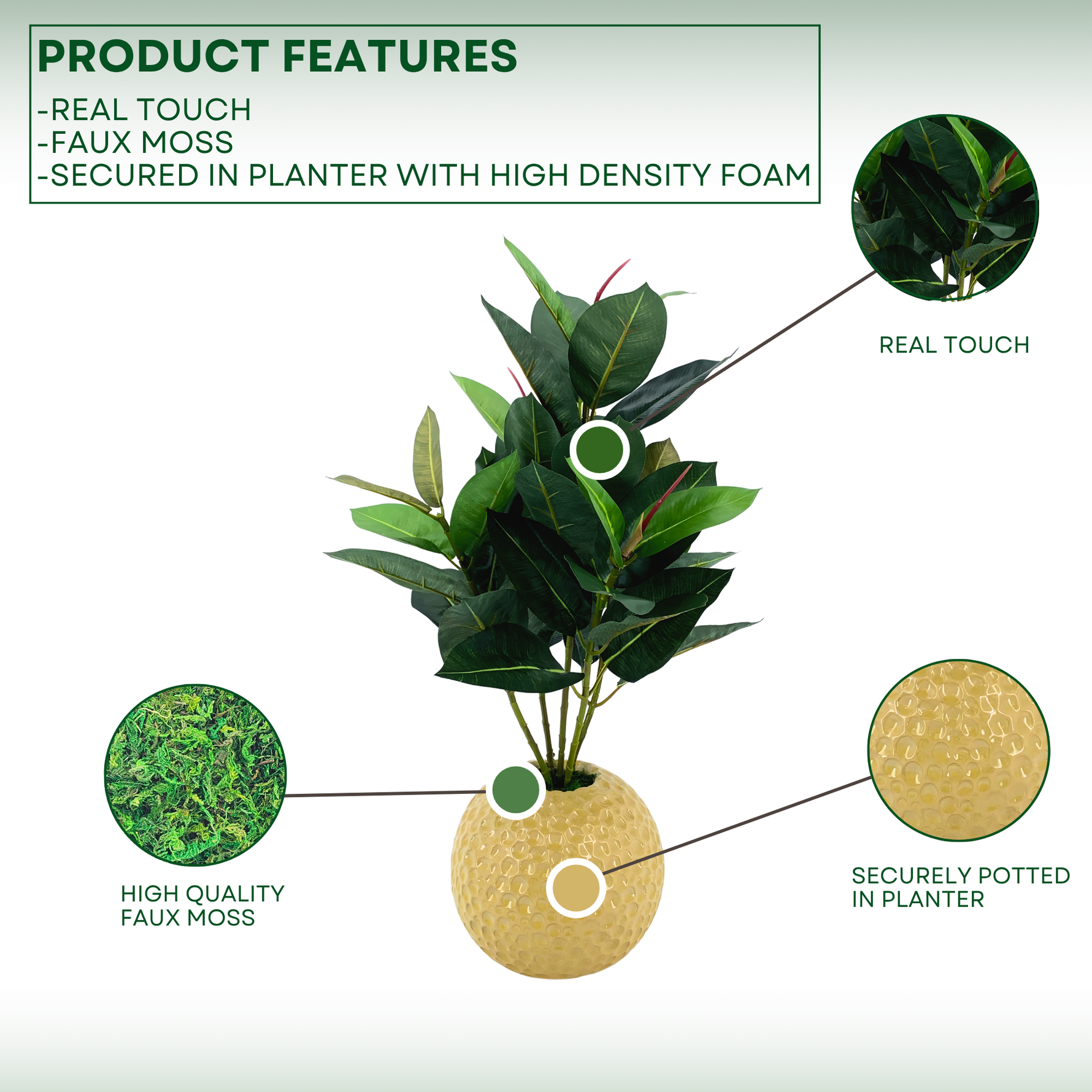 Faux Rubber Plant in Dimpled Spherical Ceramic