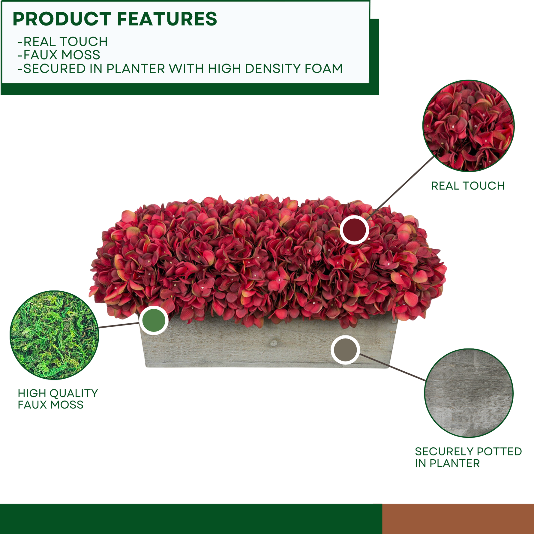 • Handcrafted and permanently set in a Grey-Wash Wood Ledge Planter
