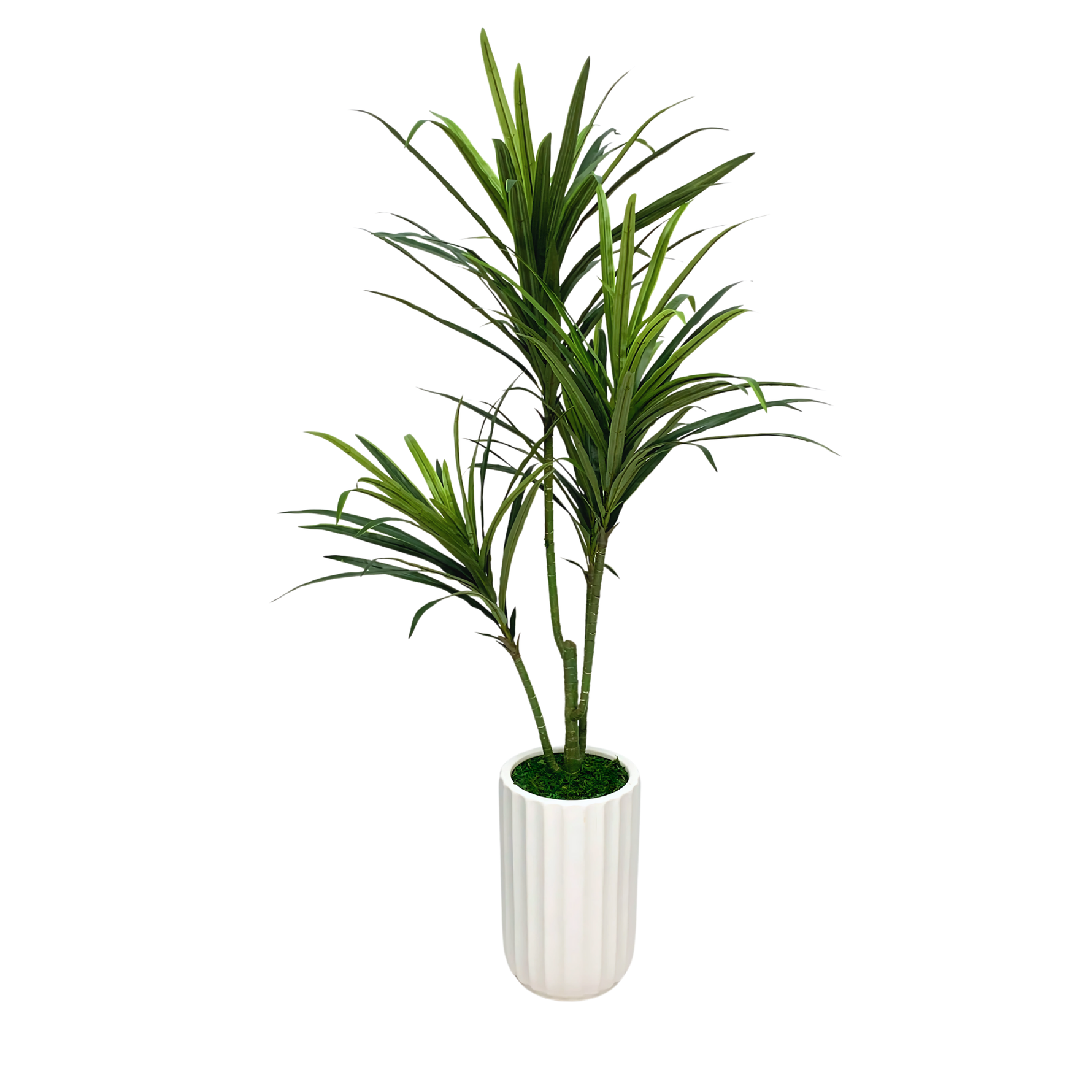 4Ft Faux Dracena in Ribbed Ceramic Cylinder