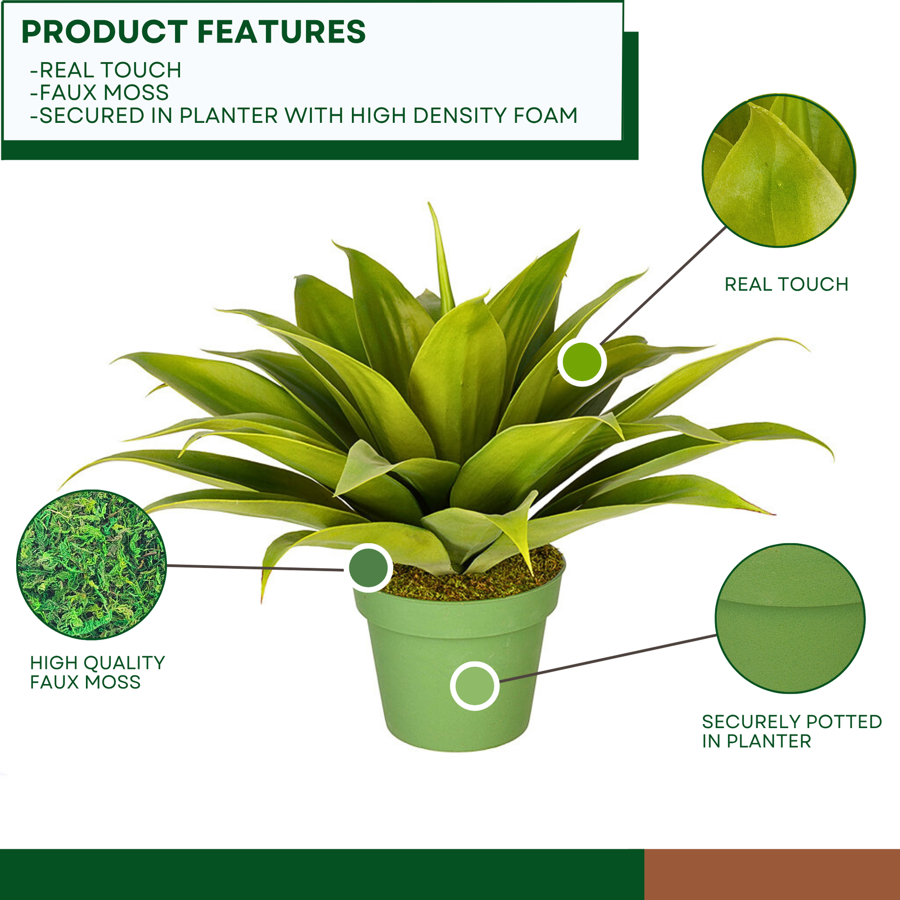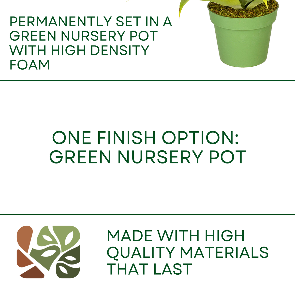 One handcrafted faux agave succulent in your selected size, securely set in a green nursery pot and ready to display with only minimal shaping required.