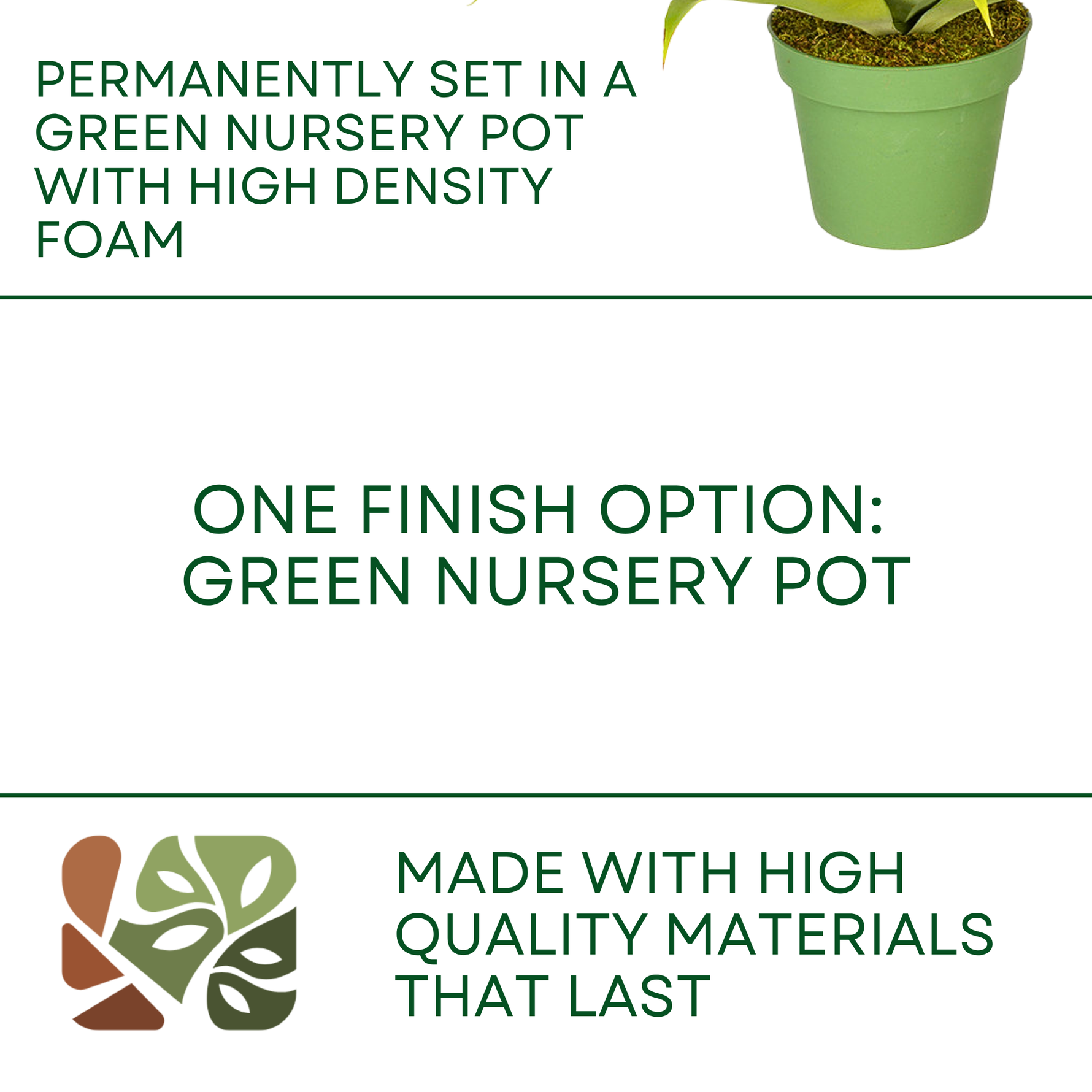 Comes in a non-decorative green nursery pot for easy styling