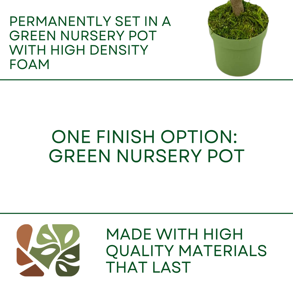 Each tree arrives securely “potted” in a simple green nursery pot, allowing you to easily place it inside your favorite decorative planter or pair it with one of our Pot-in-a-Pot compatible designs for effortless styling flexibility.